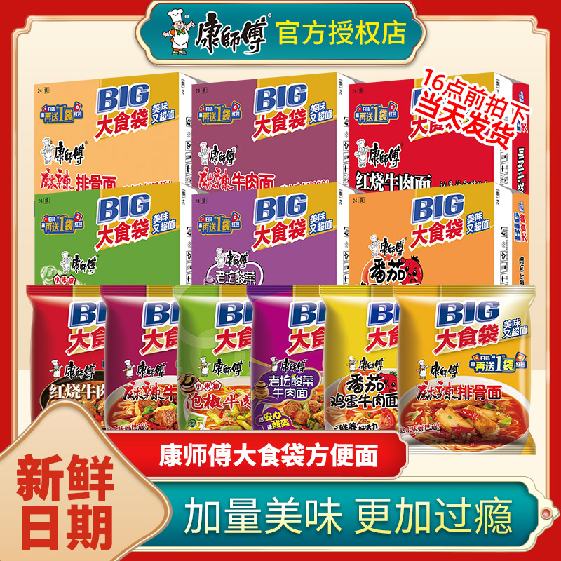 康师傅方便面BIG大食袋整箱装批发泡面红烧牛肉速食品旗舰店官网