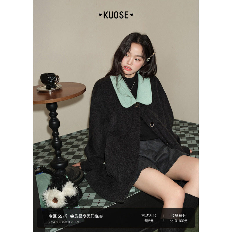 阔色黑灰色复古中长款毛呢外套女2025秋冬季新款气质宽松呢子大衣