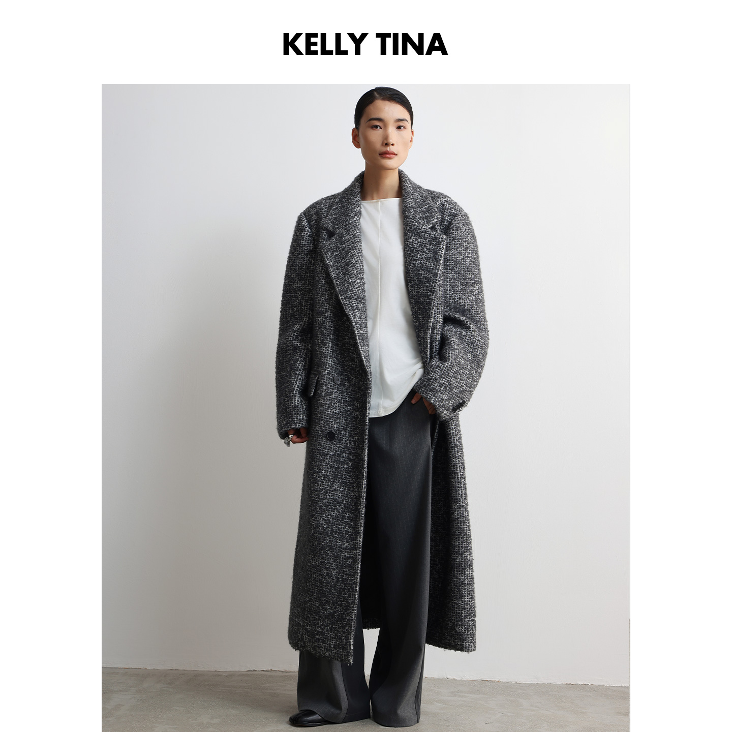 KELLY TINA圈圈纱羊毛风衣2025新款秋冬季百搭简约毛呢子长款大衣
