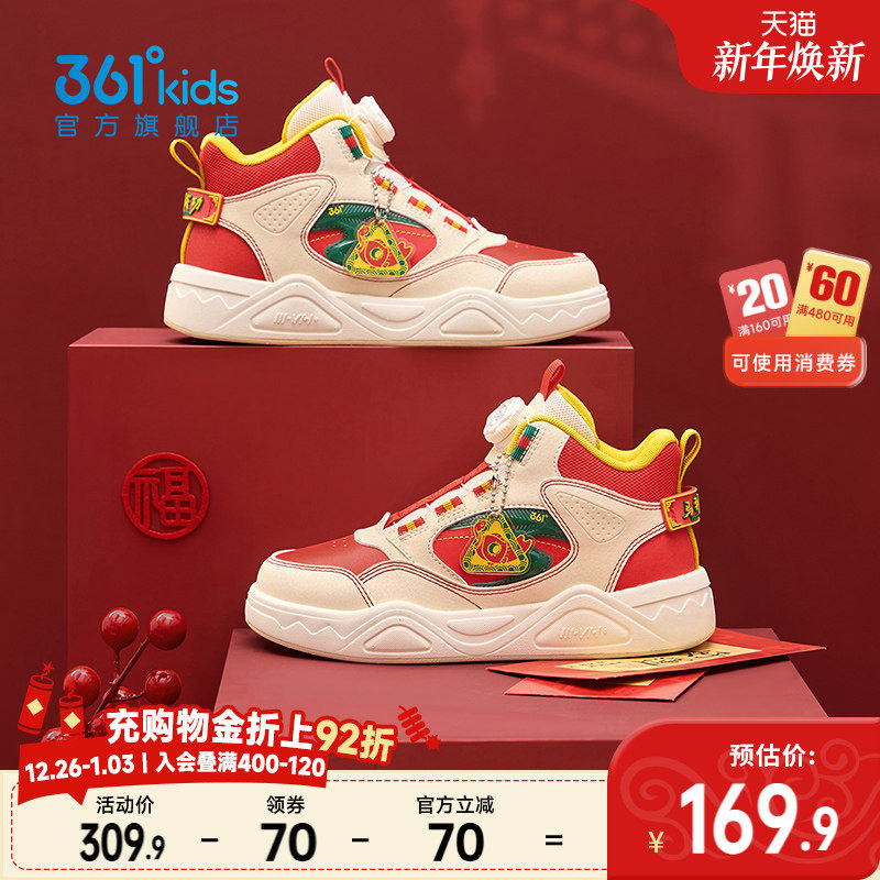 361度童鞋儿童板鞋高帮男童鞋子2026新款男孩运动鞋新年红色年鞋