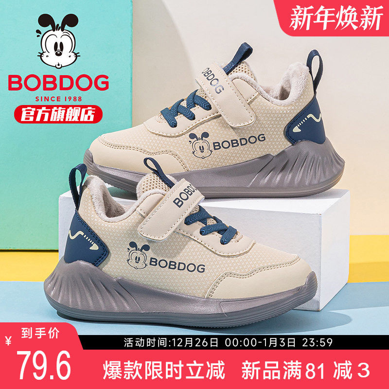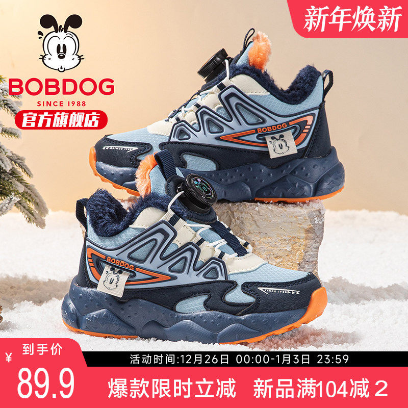 巴布豆童鞋儿童运动鞋2025冬季新款加绒二棉休闲冬鞋潮牌男童鞋子