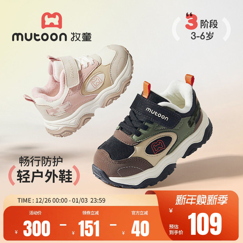牧童儿童运动鞋2025冬季新款轻便女童户外登山鞋加绒保暖男童鞋子