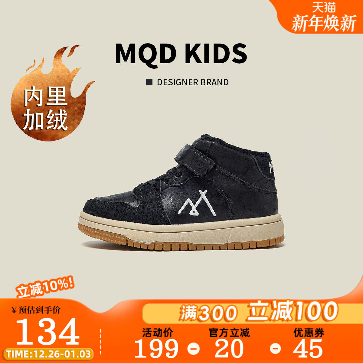 MQD童鞋男童鞋子2025冬季新款休闲百搭女童高帮户外板鞋加绒棉鞋