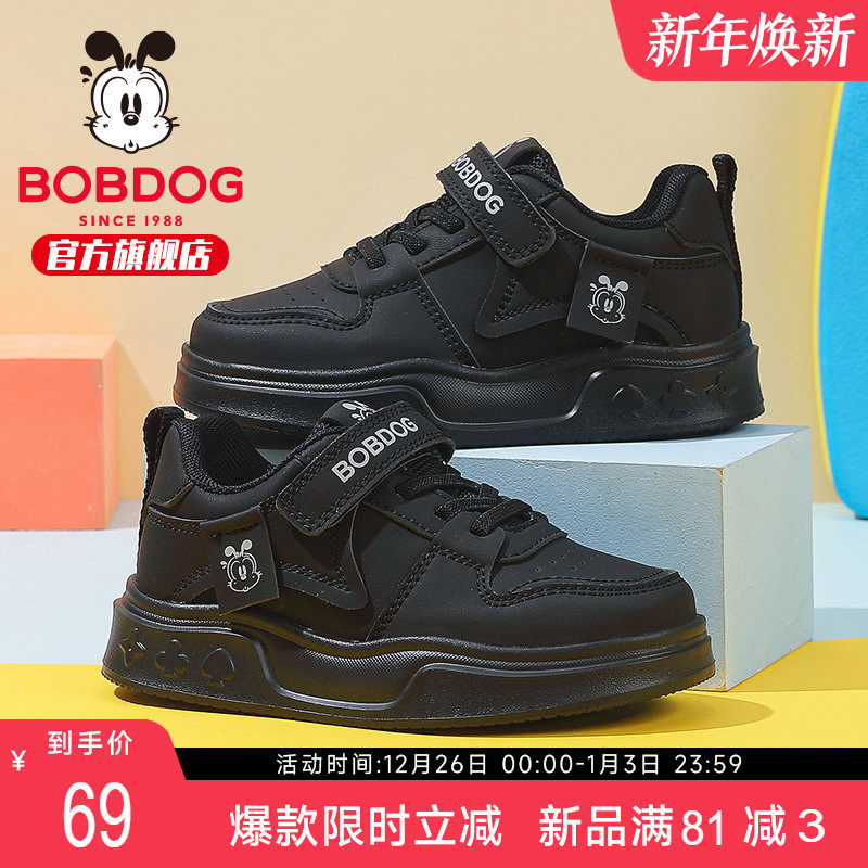 巴布豆童鞋官方旗舰店正品儿童鞋子男大童黑色板鞋秋款男童鞋子女