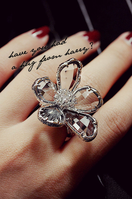 联合格韩国仿水晶烟灰色花朵气质戒指女食指指环夸张配饰饰品潮人