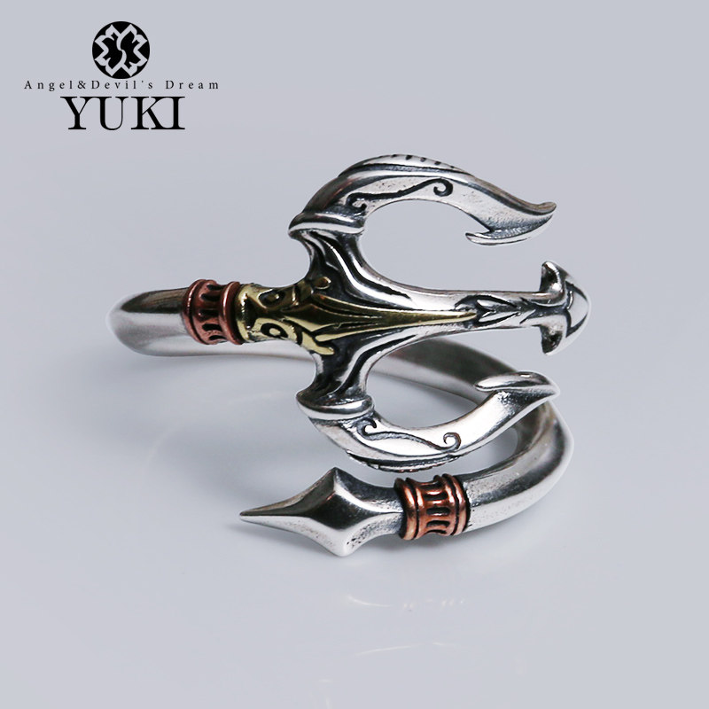 YUKI纯银戒指男士三叉戟银饰欧美小众设计师潮人男女食指戒子