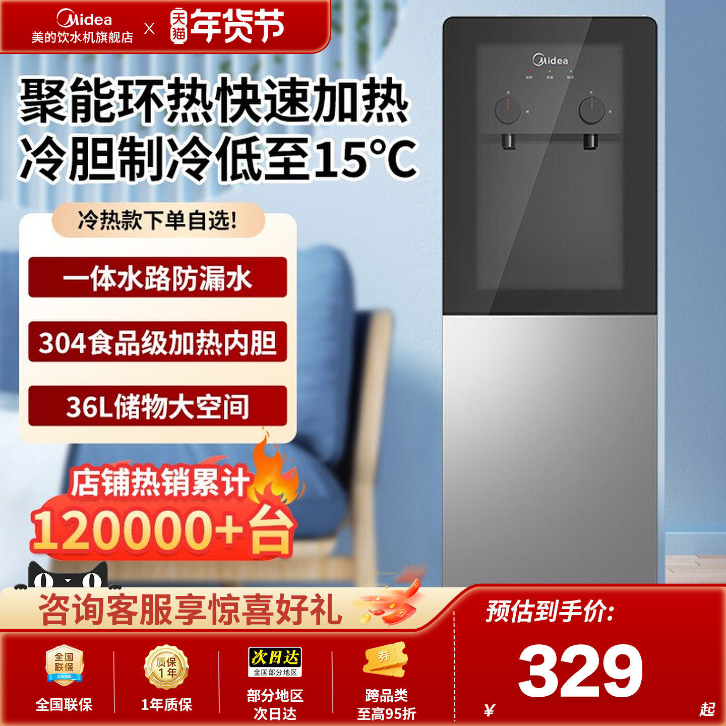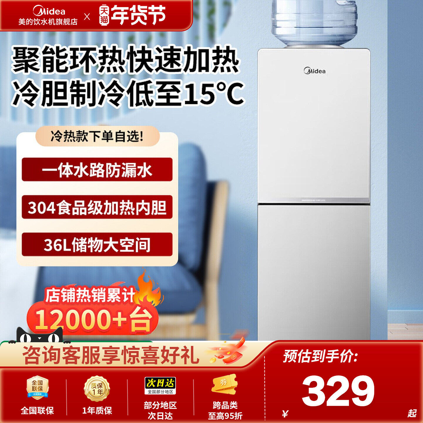 - 美的饮水机立式 冷热