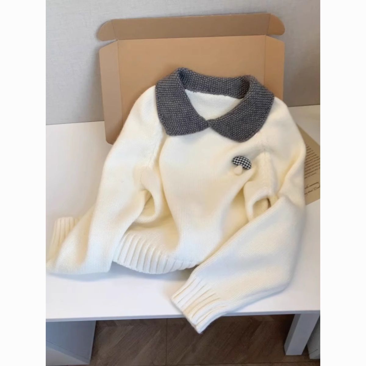 温柔百搭宽松针织衫秋冬新款可爱娃娃领小蘑菇加厚短款学生毛衣女