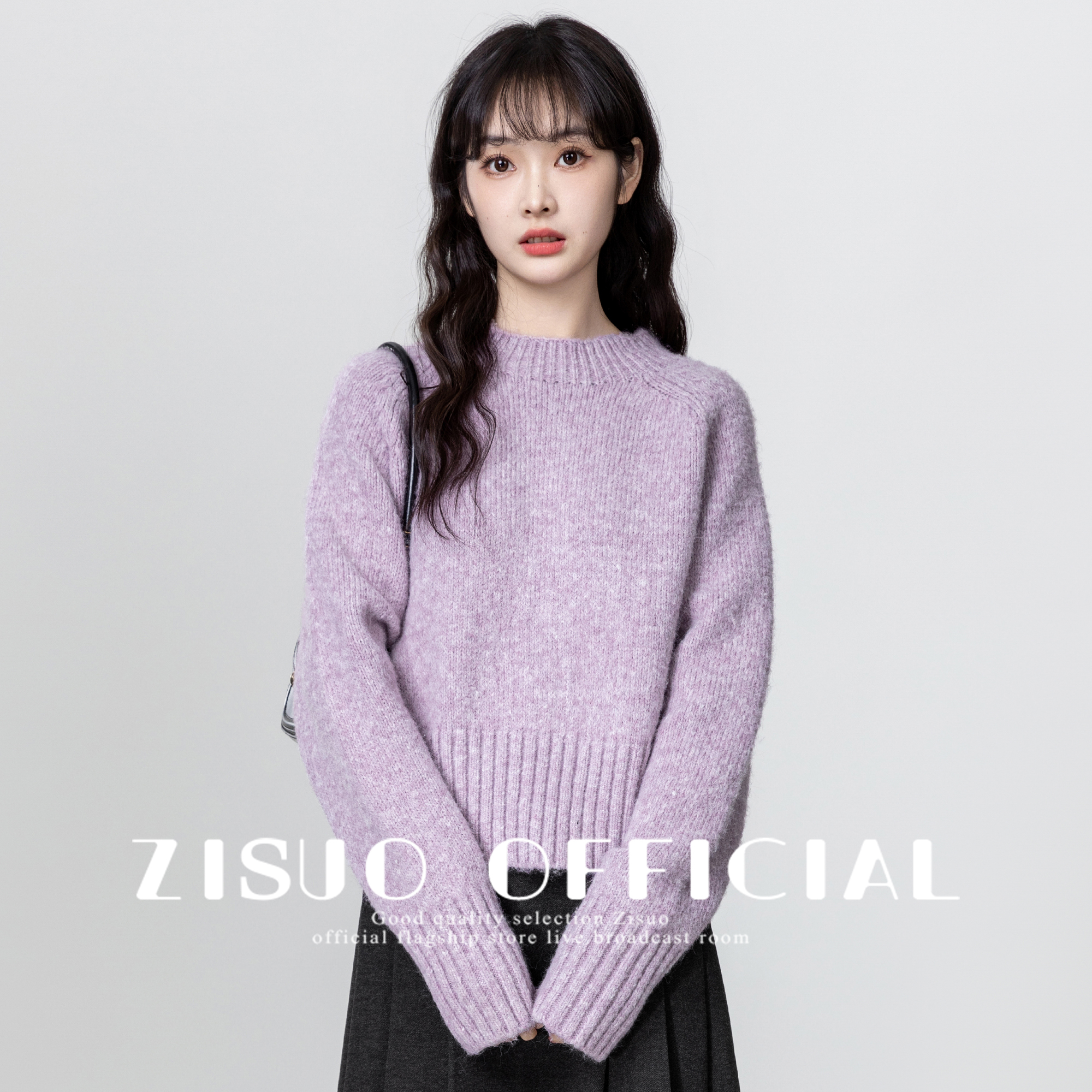 甜美日系玫粉色长袖短款毛衣女秋冬学生软糯套头梅子色针织衫外穿