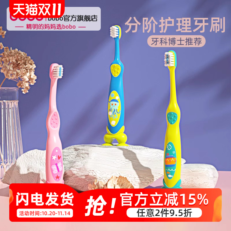 bobo儿童软毛牙刷宝宝1岁以上2岁婴儿清洁口腔分龄0-3岁到6岁12岁