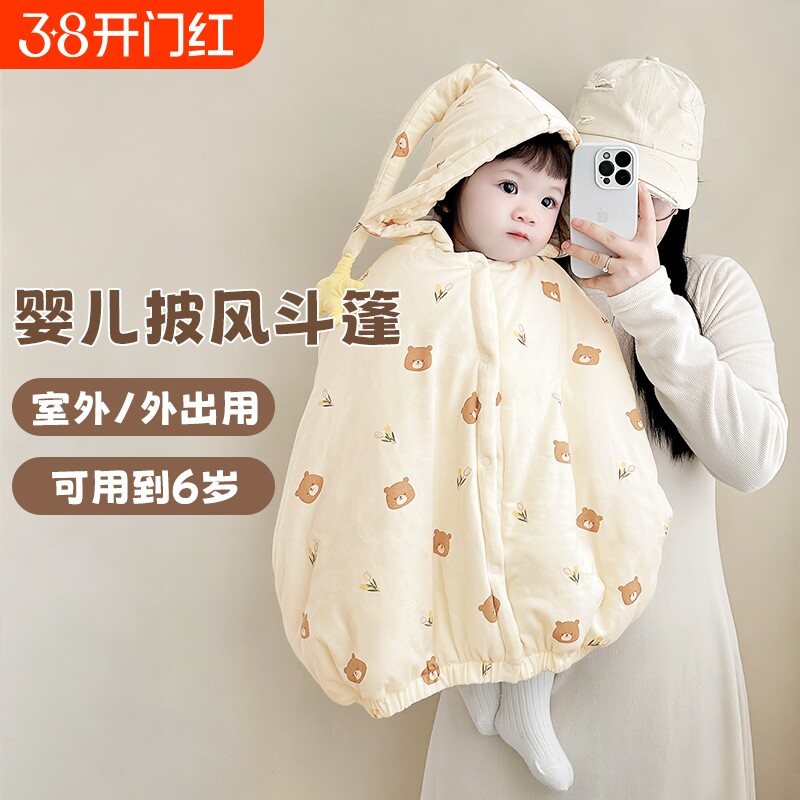 婴儿披风斗篷秋冬外出宝宝防风冬季加厚抱被男女儿童挡风防寒外套