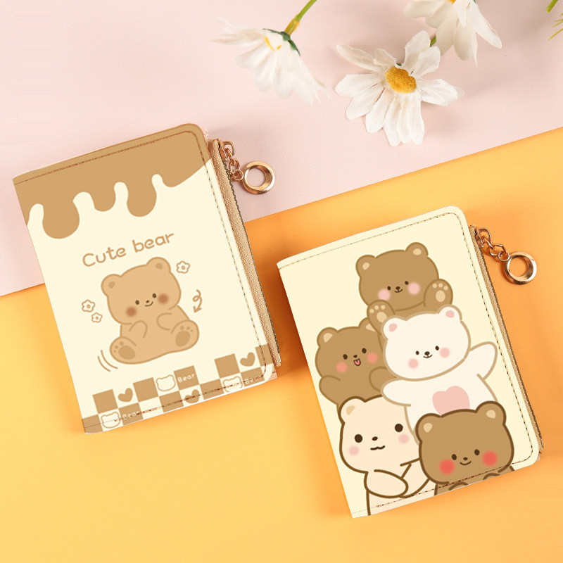 可爱小熊钱包女士新款卡通小清新学生短款折叠零钱包钱夹ins卡包