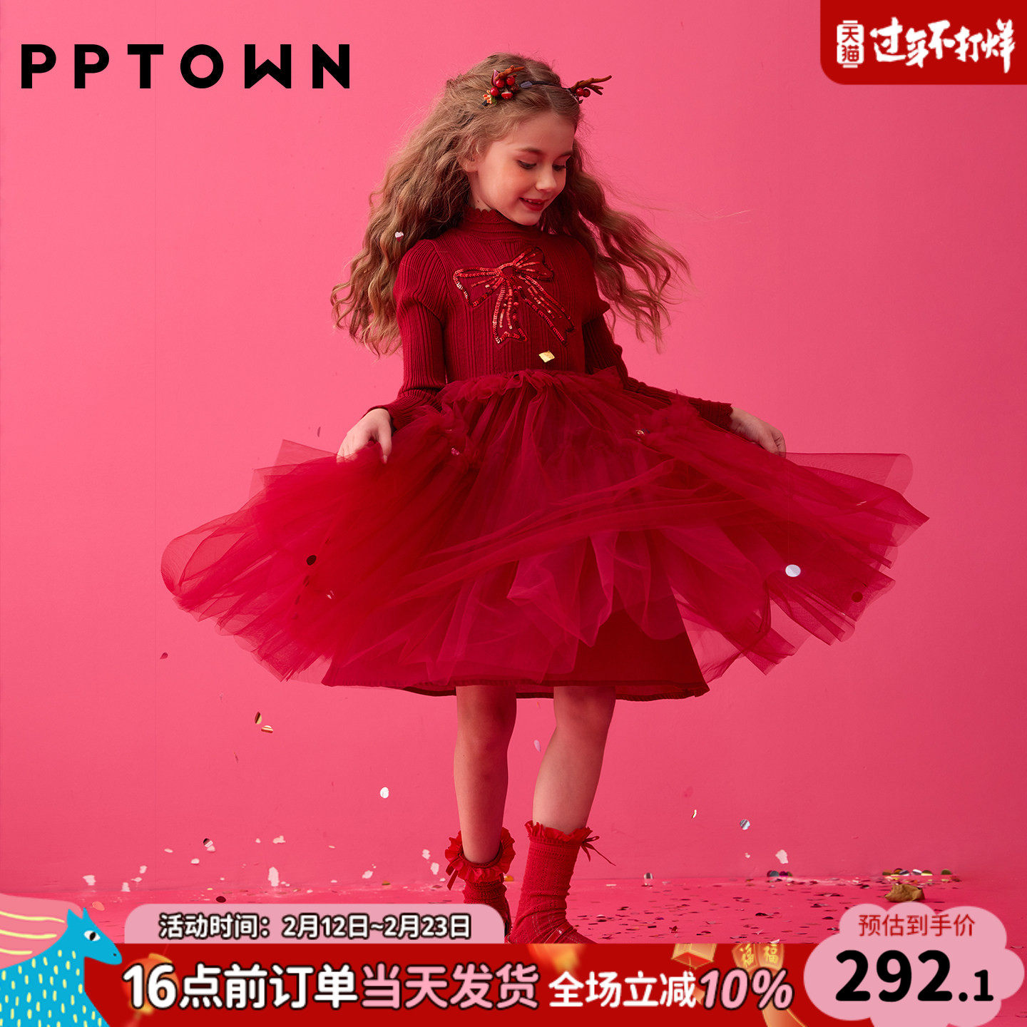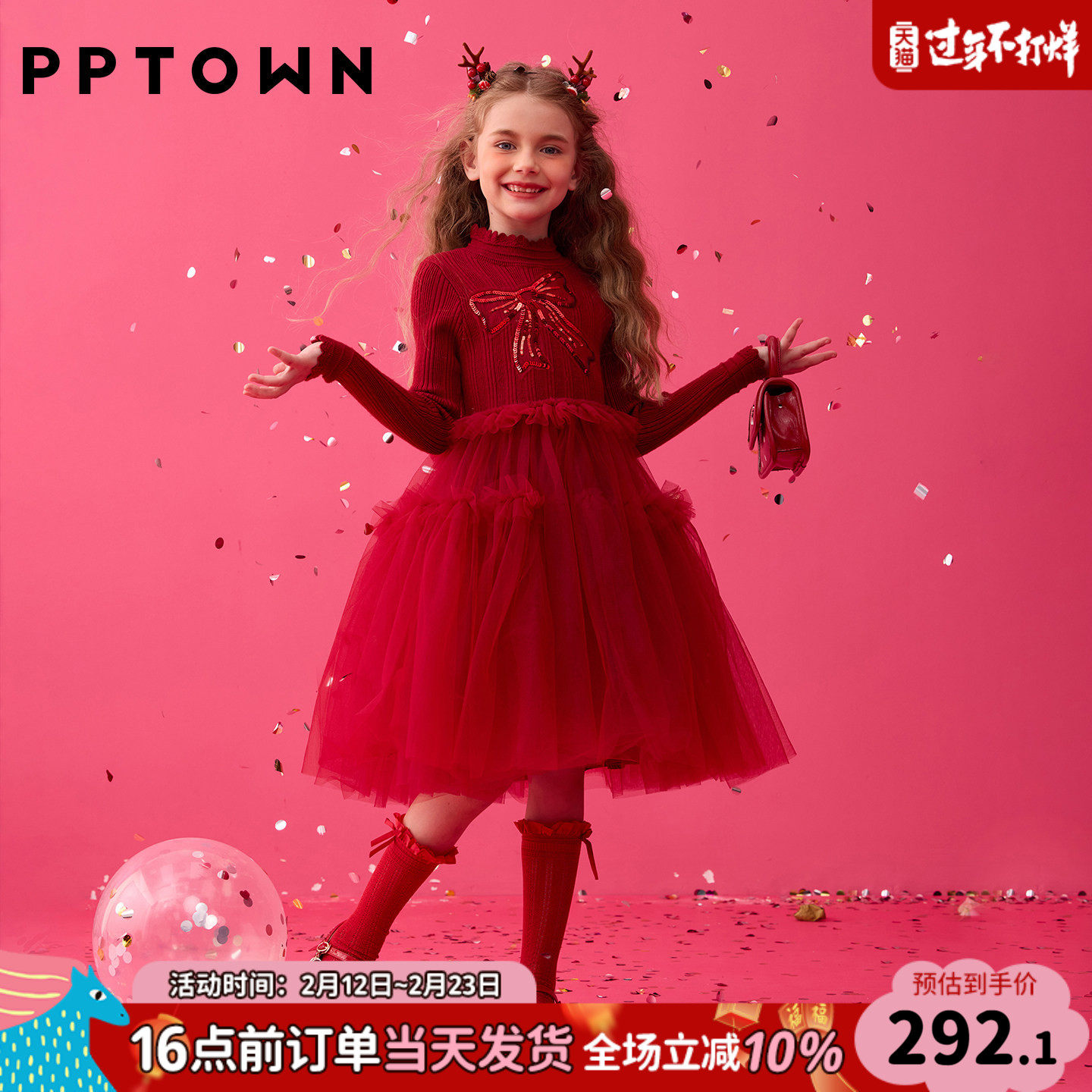 YFY秋冬女童红色喜庆蓬蓬裙连衣裙公主裙圣诞新年洛丽塔亮片闪闪