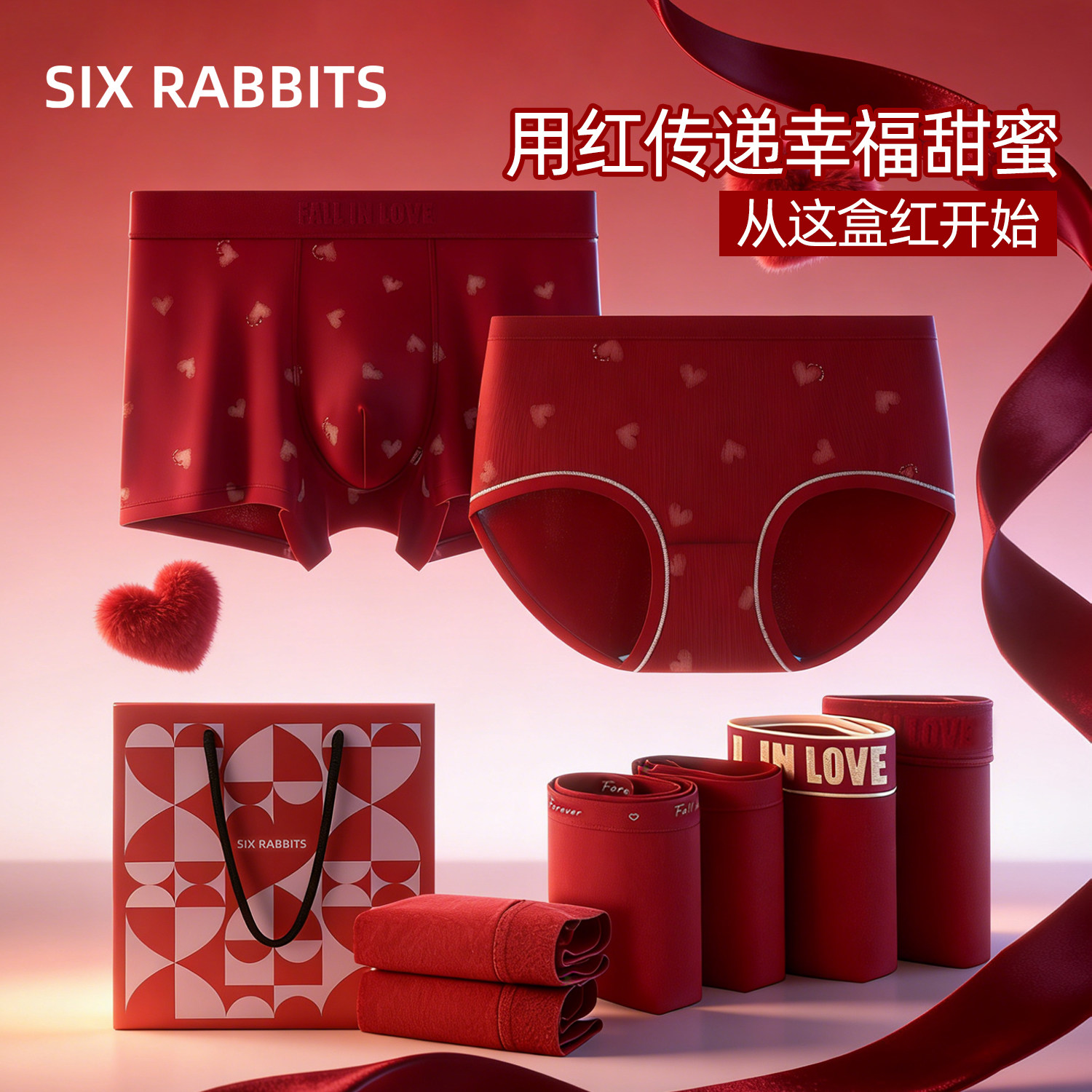 六只兔子大红色情侣内裤一男一女结婚新年本命年红色男士内裤女士