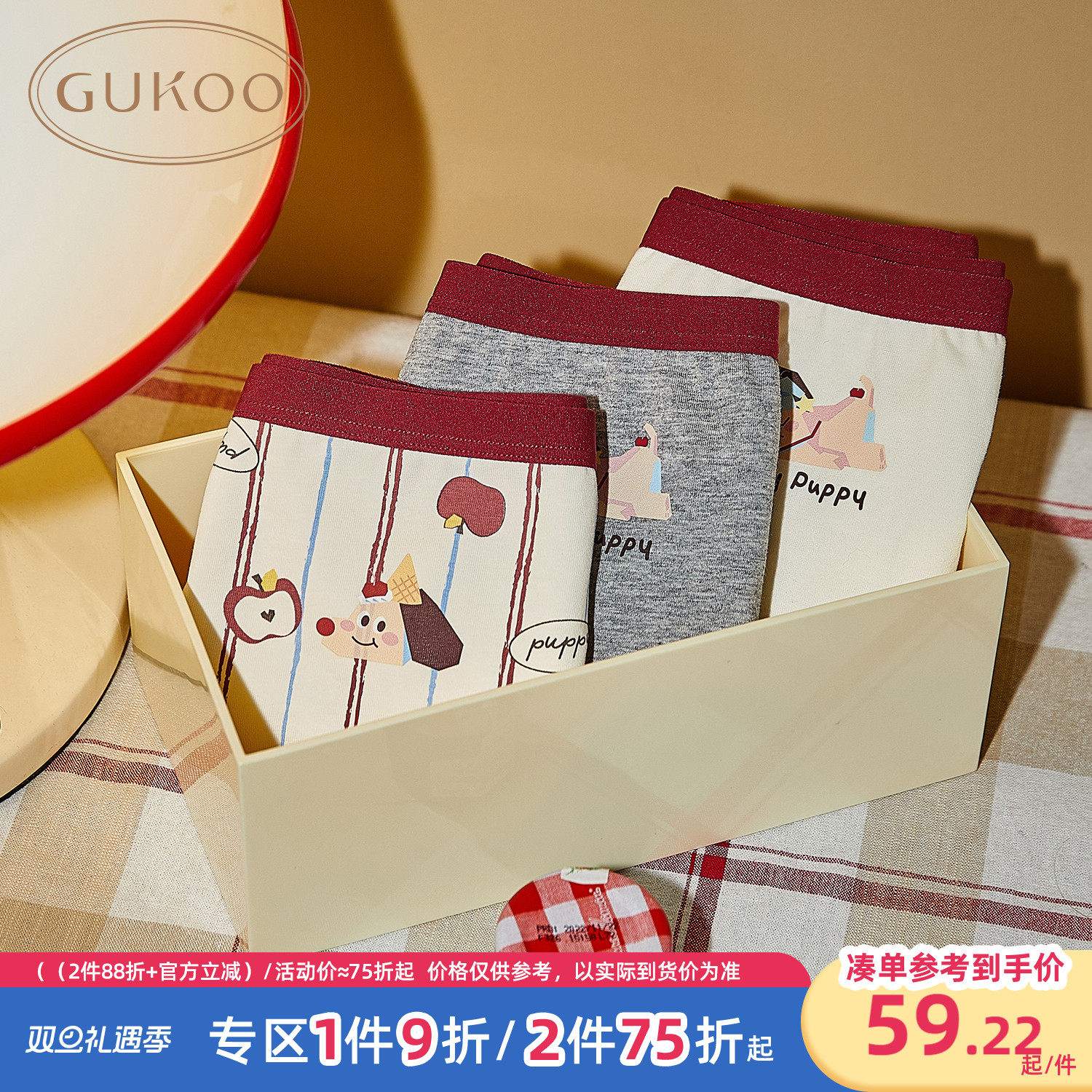 Gukoo/果壳情侣内裤春夏轰轰小狗本命年新款纯棉裆底女士内裤组合