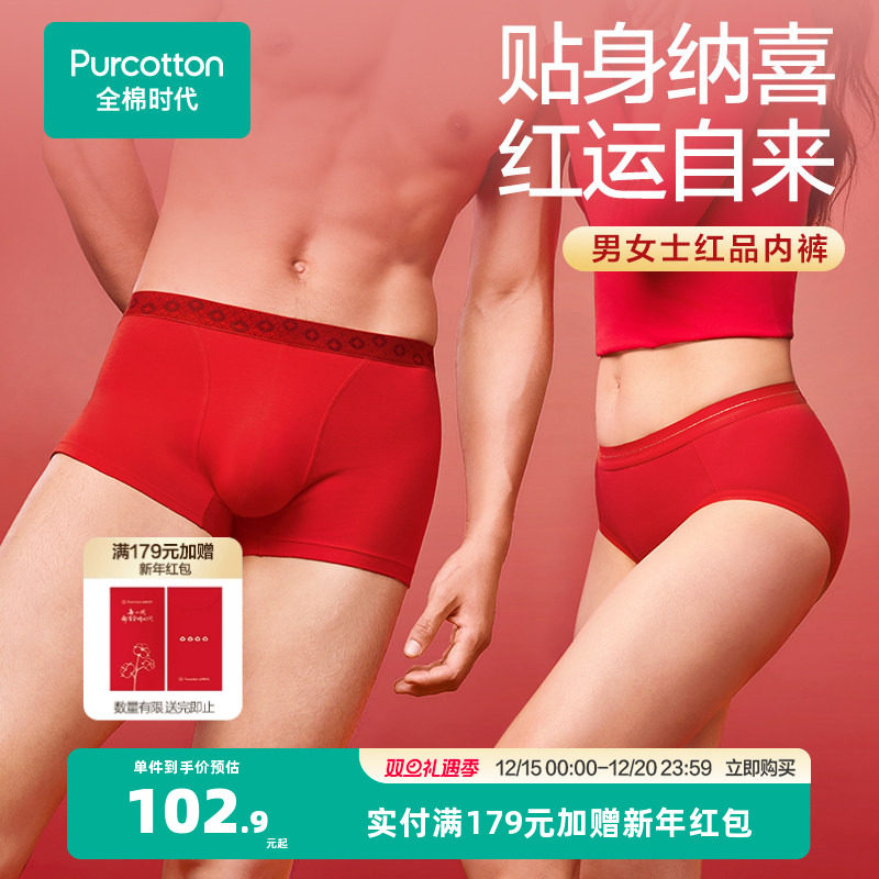 都市丽人本命年红色内裤情侣款结婚一男一女纯棉10a抗菌新年套装