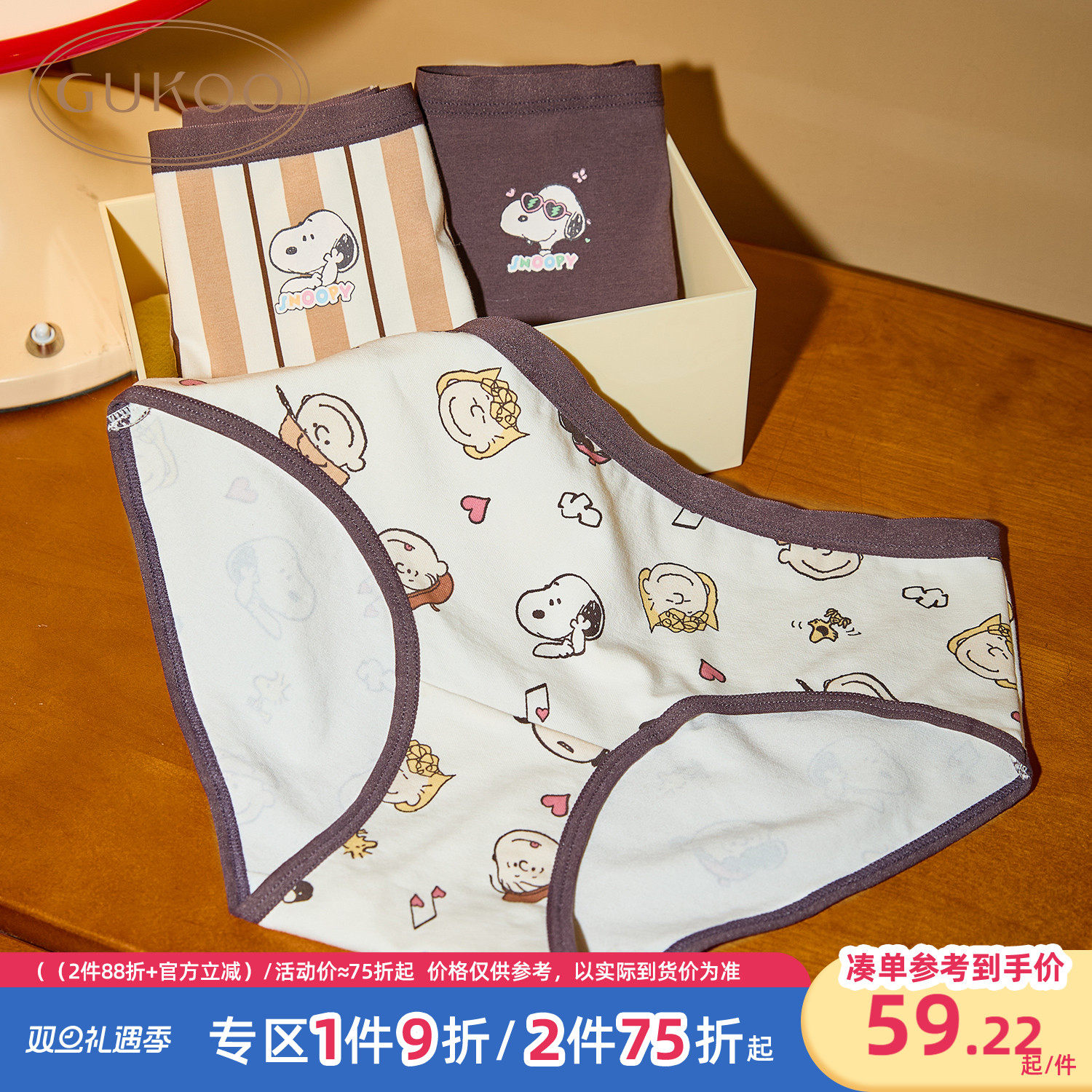 Gukoo/果壳情侣内裤女春夏史努比联名新款纯棉裆女士内裤组合
