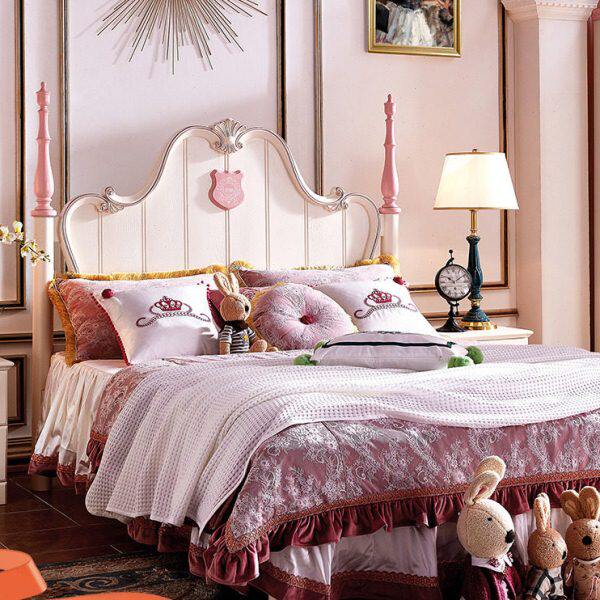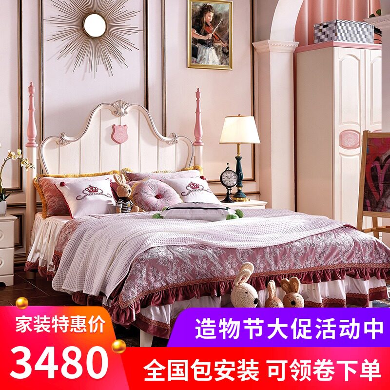 欧式米双人床1.5粉色1.8米儿童床女孩套房全实木家具组合公主床单