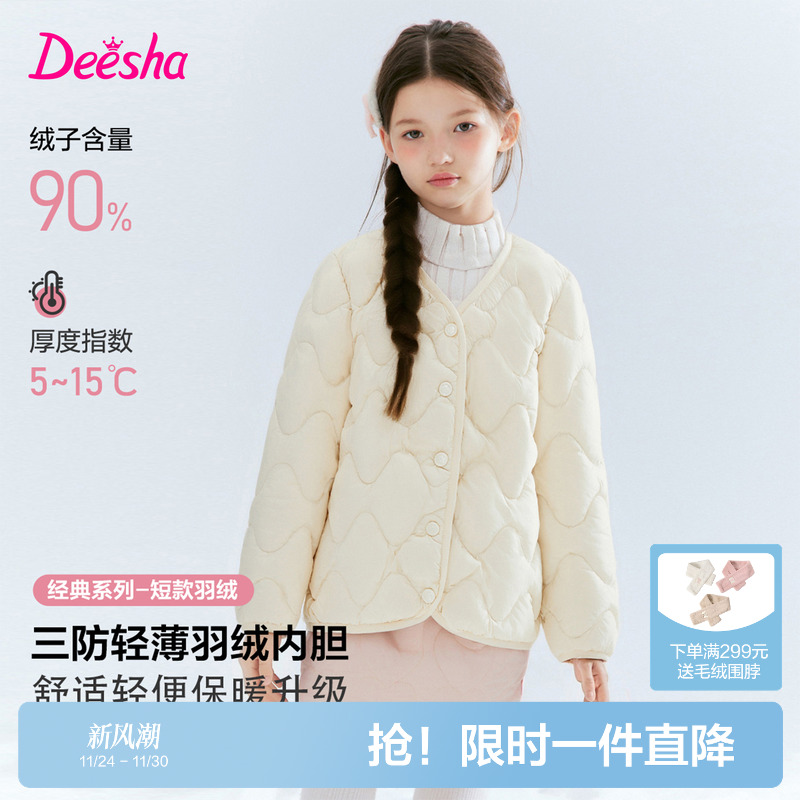笛莎官方旗舰童装女童轻薄排骨羽绒服秋冬季新款大童儿童外套内胆