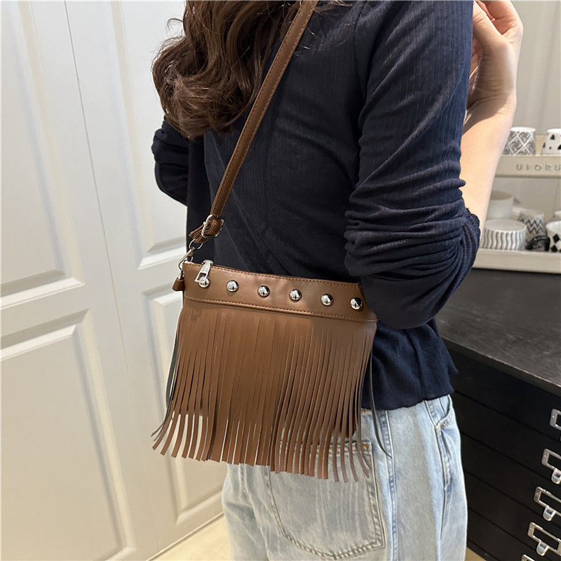 韩系美拉德流苏包包女生秋冬复古斜跨小包包废土牛仔风辣妹手机包