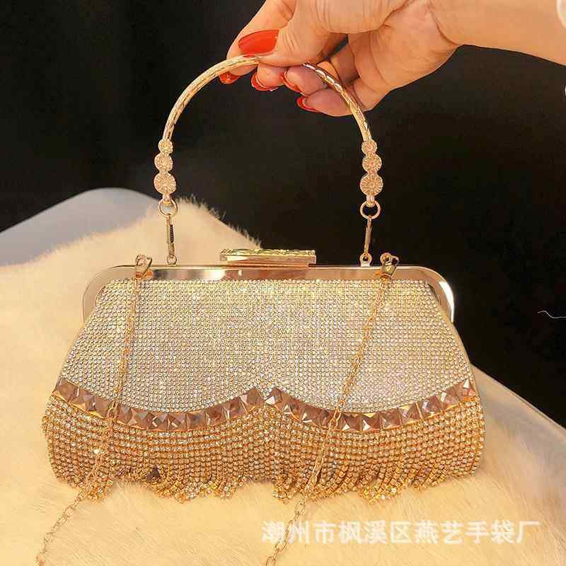 潮牌韩版新款水钻流苏包包女斜挎包镶钻晚宴包小礼服包手提宴会包