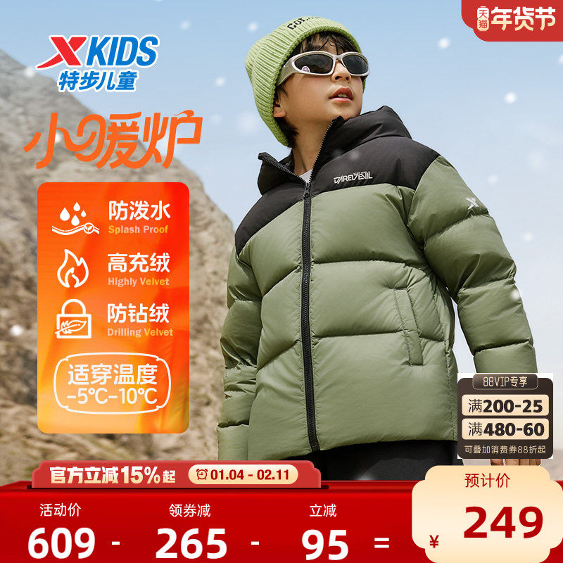 特步童装儿童羽绒服男童加厚冬装2025年秋冬款大童保暖外套防寒服