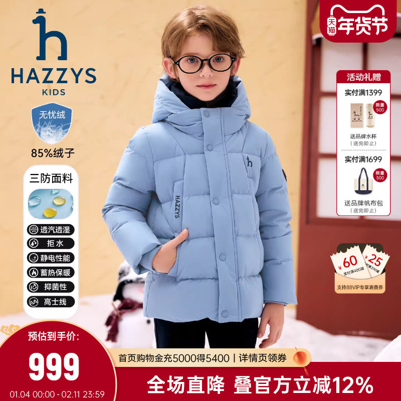 hazzys哈吉斯童装男童羽绒服25冬新抑菌高充绒三防保暖外套