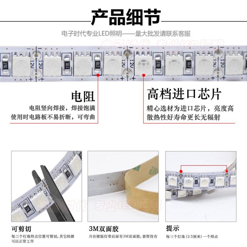 12V高亮LED灯带5050贴片套管防水七彩变色60灯珠30珠展柜灯条24v