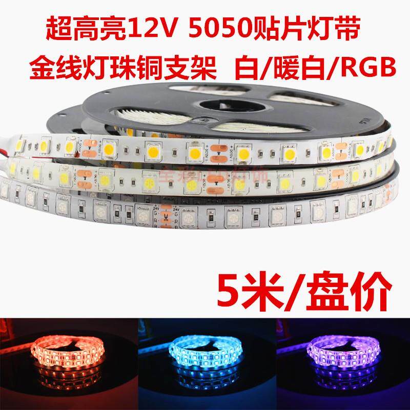 超高亮LED灯带12V伏5050贴片金线铜支架单色灯条白光暖白七彩RGB