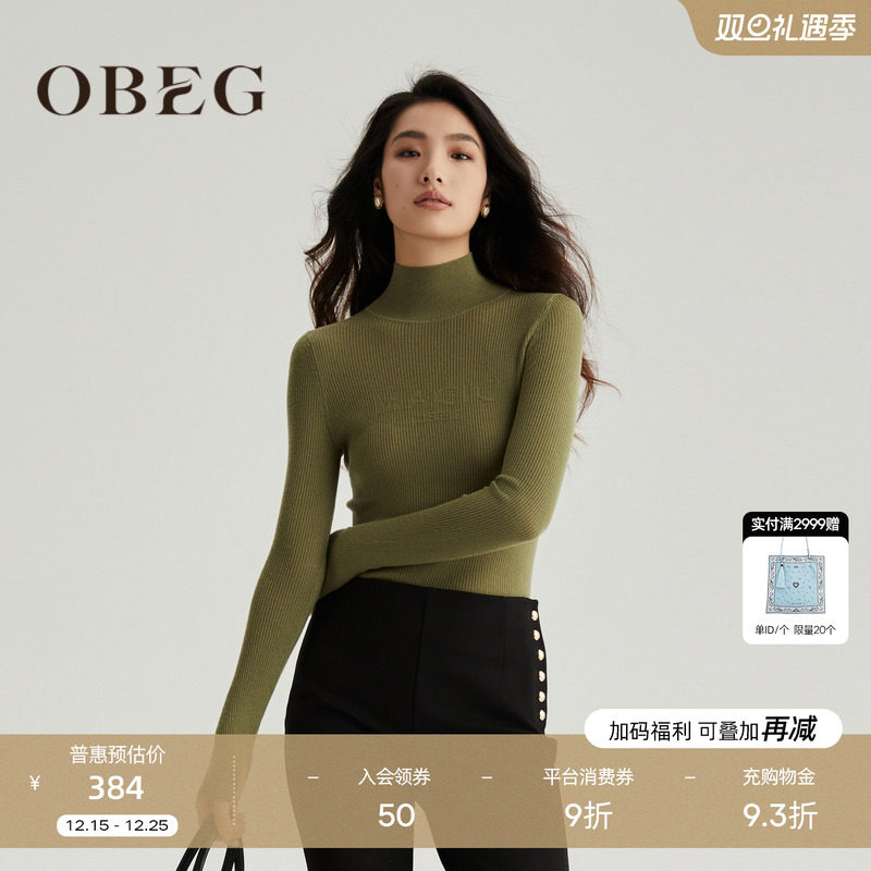 OBEG欧碧倩基础多色修身羊毛针织打底衫半高领冬10464003