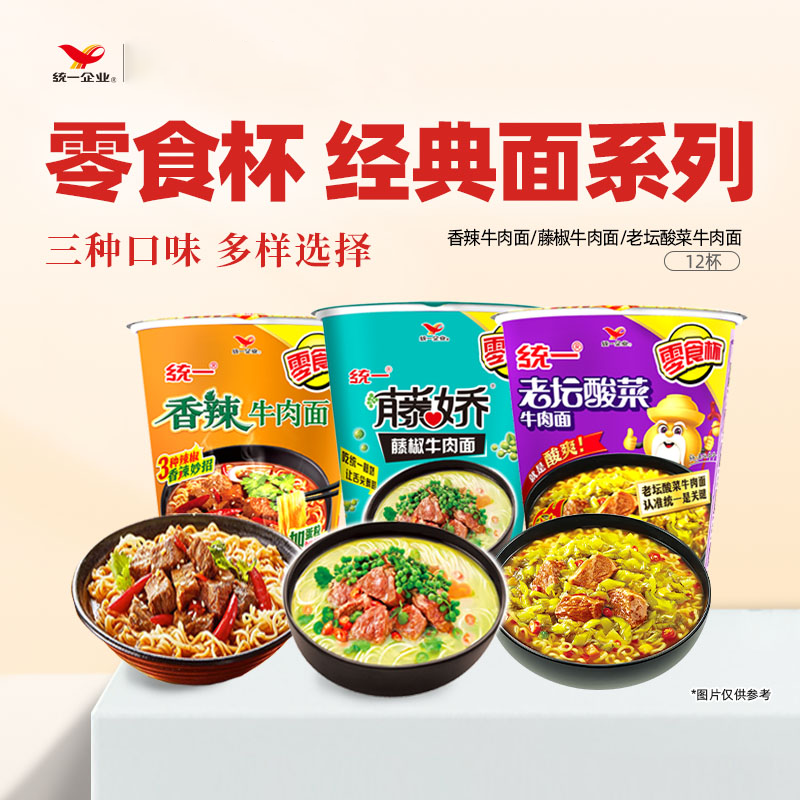 统一方便面老坛酸菜藤椒香辣牛肉面12桶整箱经典辣味组合夜宵加班