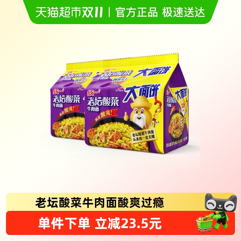 统一方便面老坛酸菜红烧牛肉香辣藤娇牛肉面速食大袋大面饼超满足