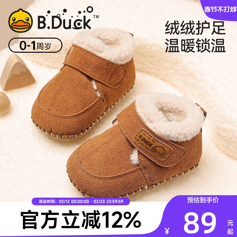 小黄鸭童鞋婴幼儿步前鞋2025冬季新款女宝宝软底加绒保暖男童棉鞋