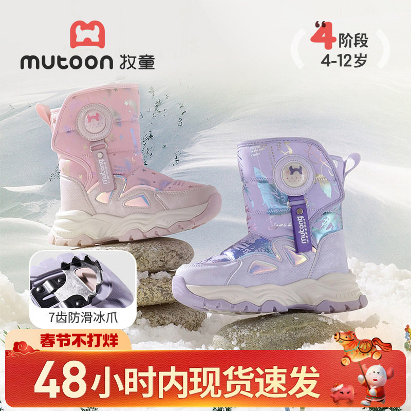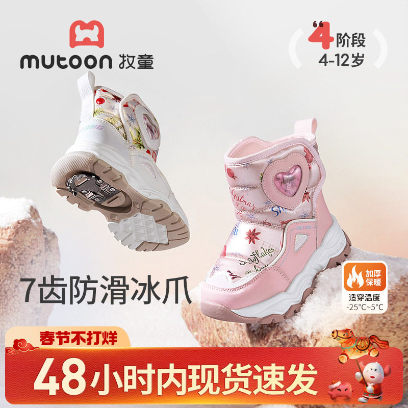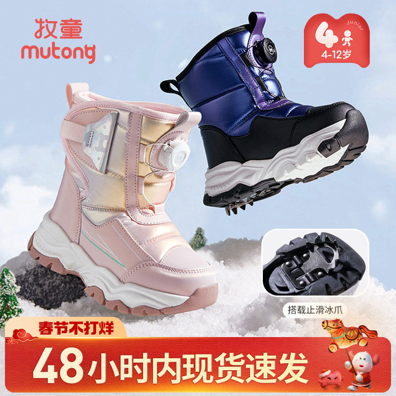 牧童女童雪地靴冬季东北冰爪加绒保暖时尚儿童大棉靴加厚防水童鞋