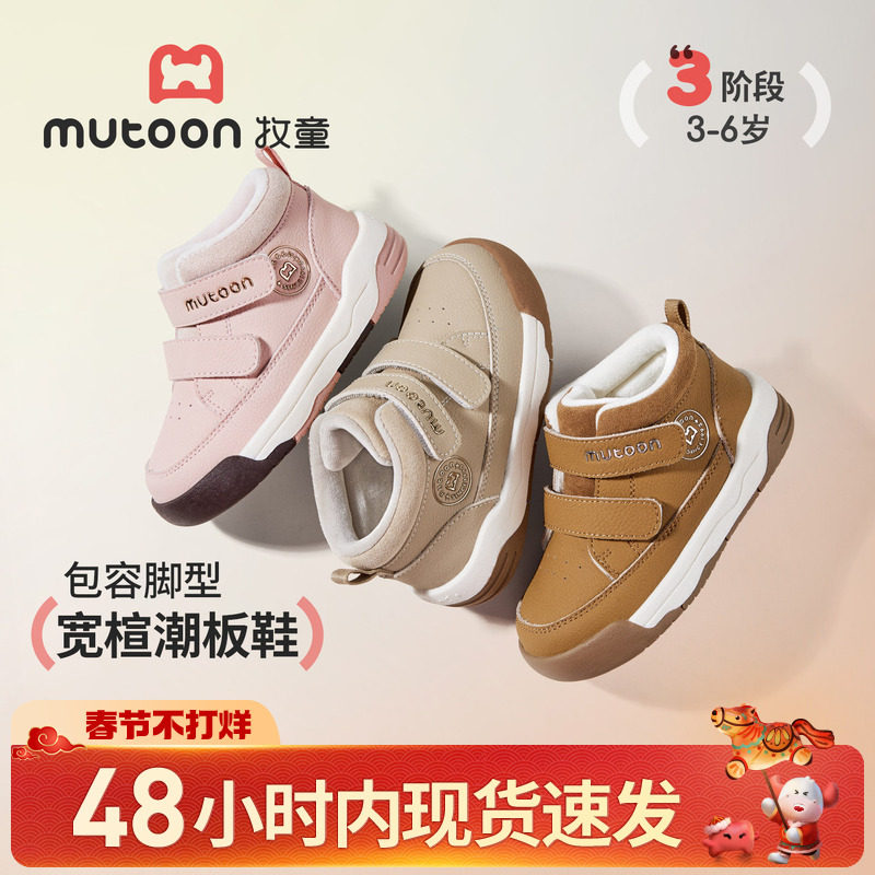 牧童童鞋儿童板鞋2025冬季新款男童皮面休闲鞋加绒保暖女童二棉鞋