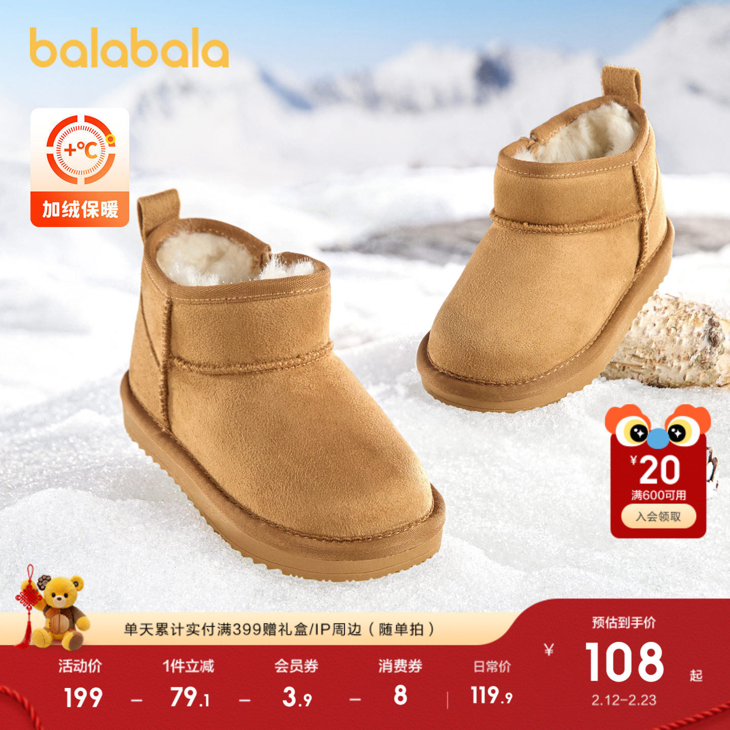 巴拉巴拉童鞋儿童雪地靴男女童短靴宝宝加绒加厚棉鞋2025新冬靴子