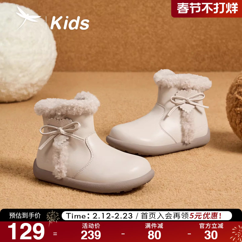 红蜻蜓女童鞋2025秋冬新款加绒儿童短靴保暖皮靴雪地靴毛毛靴