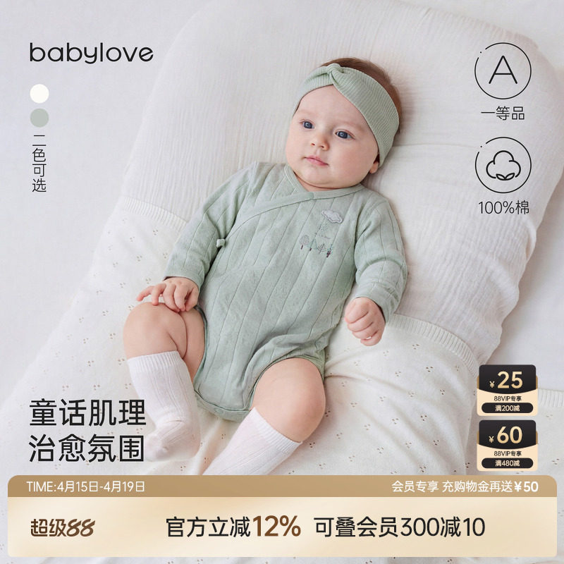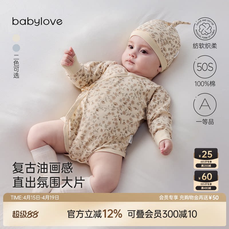 babylove婴儿包屁衣春秋长袖爬服纯棉宝宝三角哈衣洋气莫奈花园