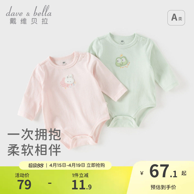 戴维贝拉婴儿衣服春装男连体衣抗菌防螨三角哈衣女宝宝长袖包屁衣