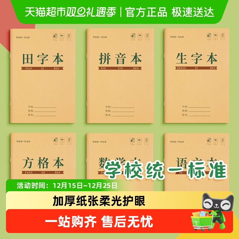 36k小学生统一标准作业本拼音田字格生字语文数学英语格子儿童幼儿园专用课题本学习一年级练字本小本子批发