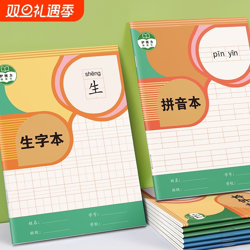 加厚80克小学生统一作业本牛皮硬面24K汉语拼音写字本一年级练字本20本装A5生字本单词本汉字本25K中号语文本