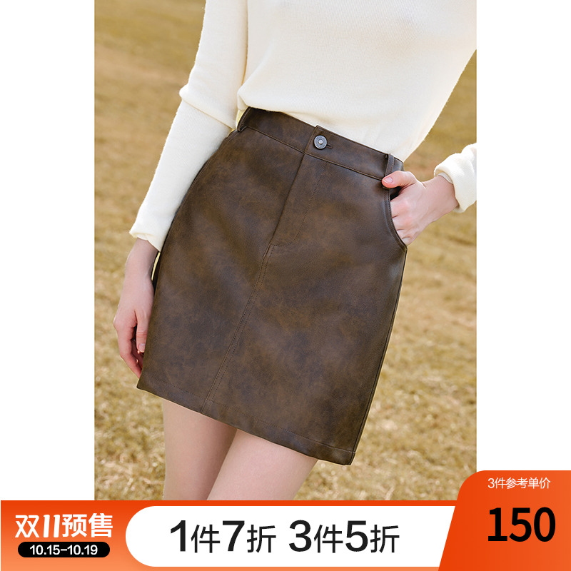 betu百图复古美拉德包臀短裙女半身裙2024年冬季新款辣妹小皮裙