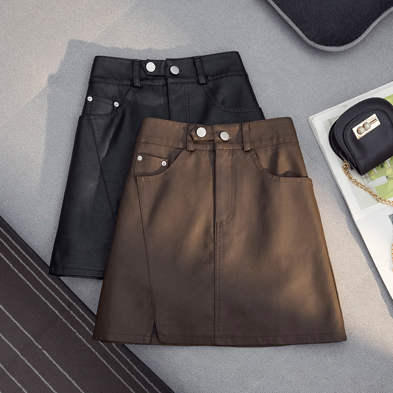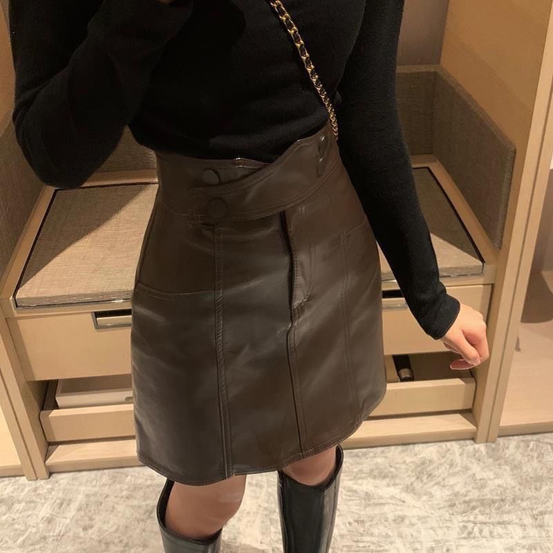 2025秋冬季a字半身裙PU皮裙修身显瘦百搭高腰裙小皮裙包臀短裙