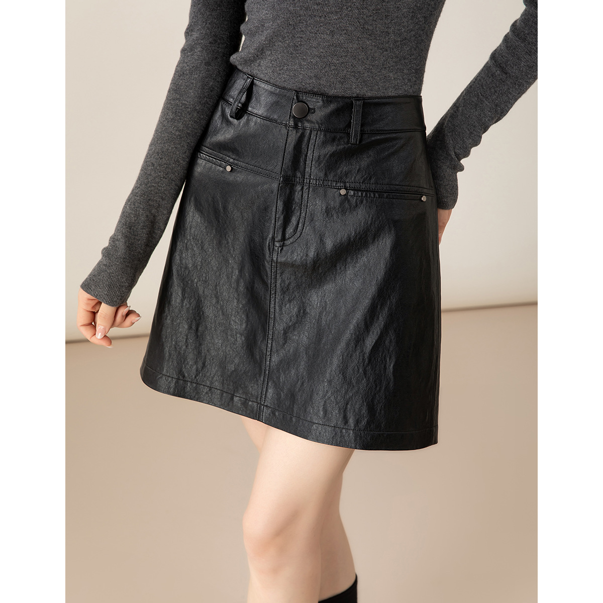 2025春秋新款绵羊皮真皮皮裙半身裙女a字裙高腰短裙包臀裙中长裙