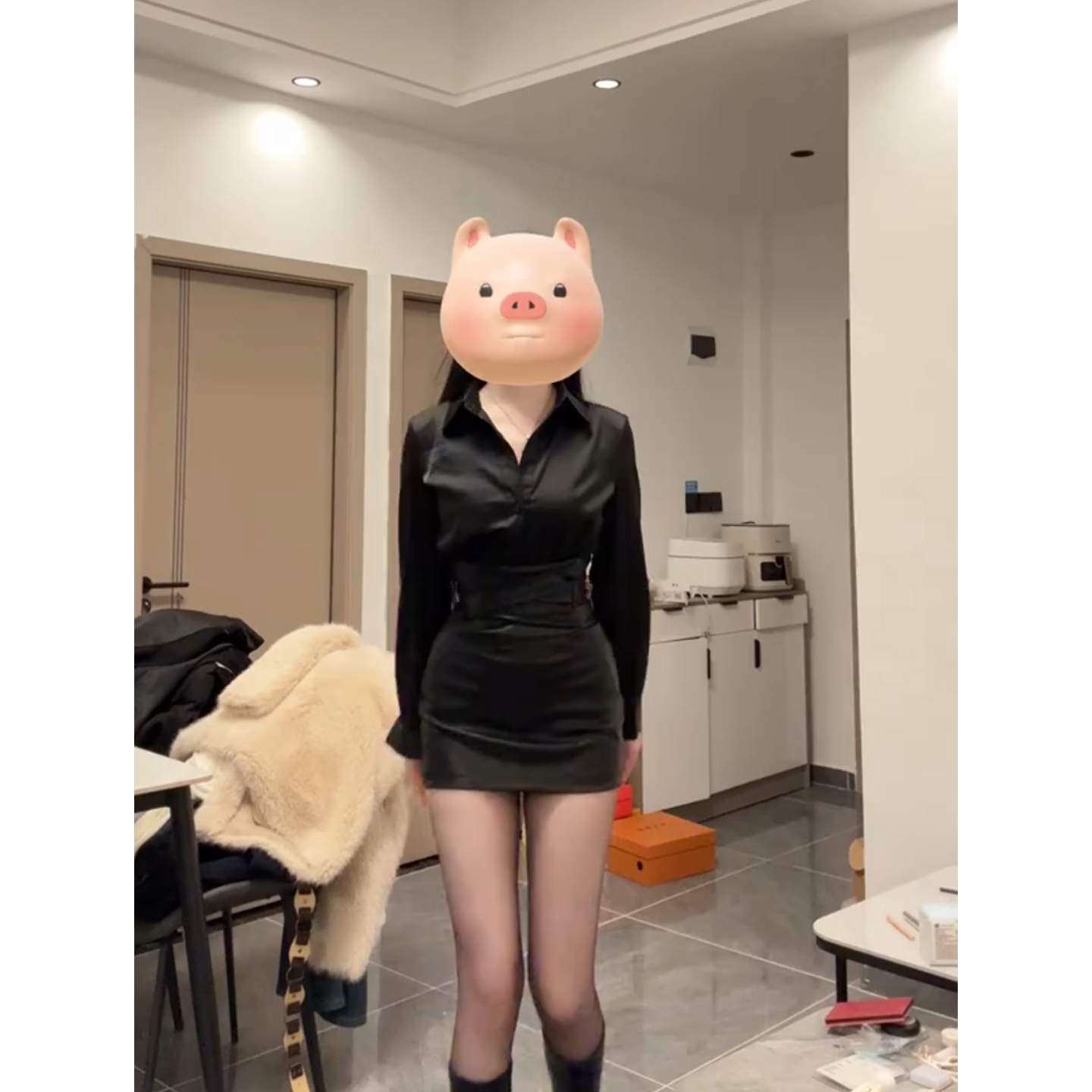 黑色小皮裙半身裙女秋冬2025新款辣妹风高腰显瘦性感包臀PU皮短裙