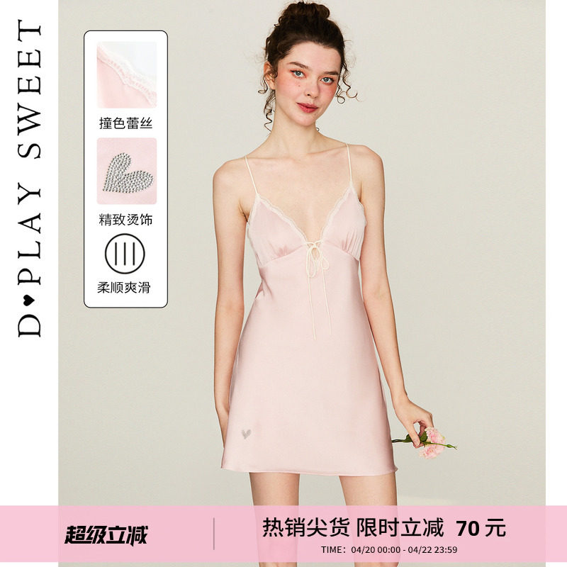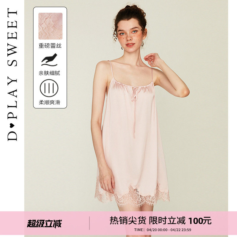 DPLAYSWEET法式缎面蕾丝吊带睡裙女2026夏季新款性感粉色美背睡衣