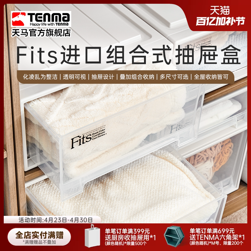 Tenma天马进口fits组合式抽屉柜收纳盒家用衣服整理箱储物箱