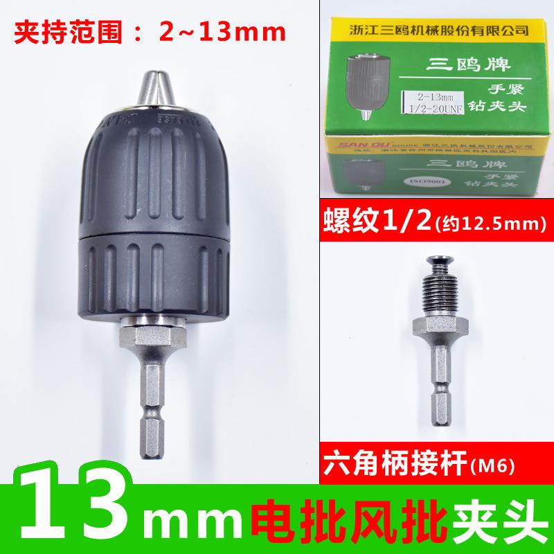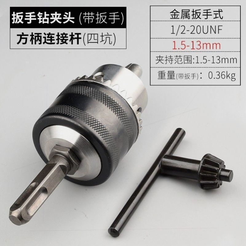 13mm电动扳手式钻夹头冲击电锤转换电钻夹头圆柄两坑两槽方柄四坑