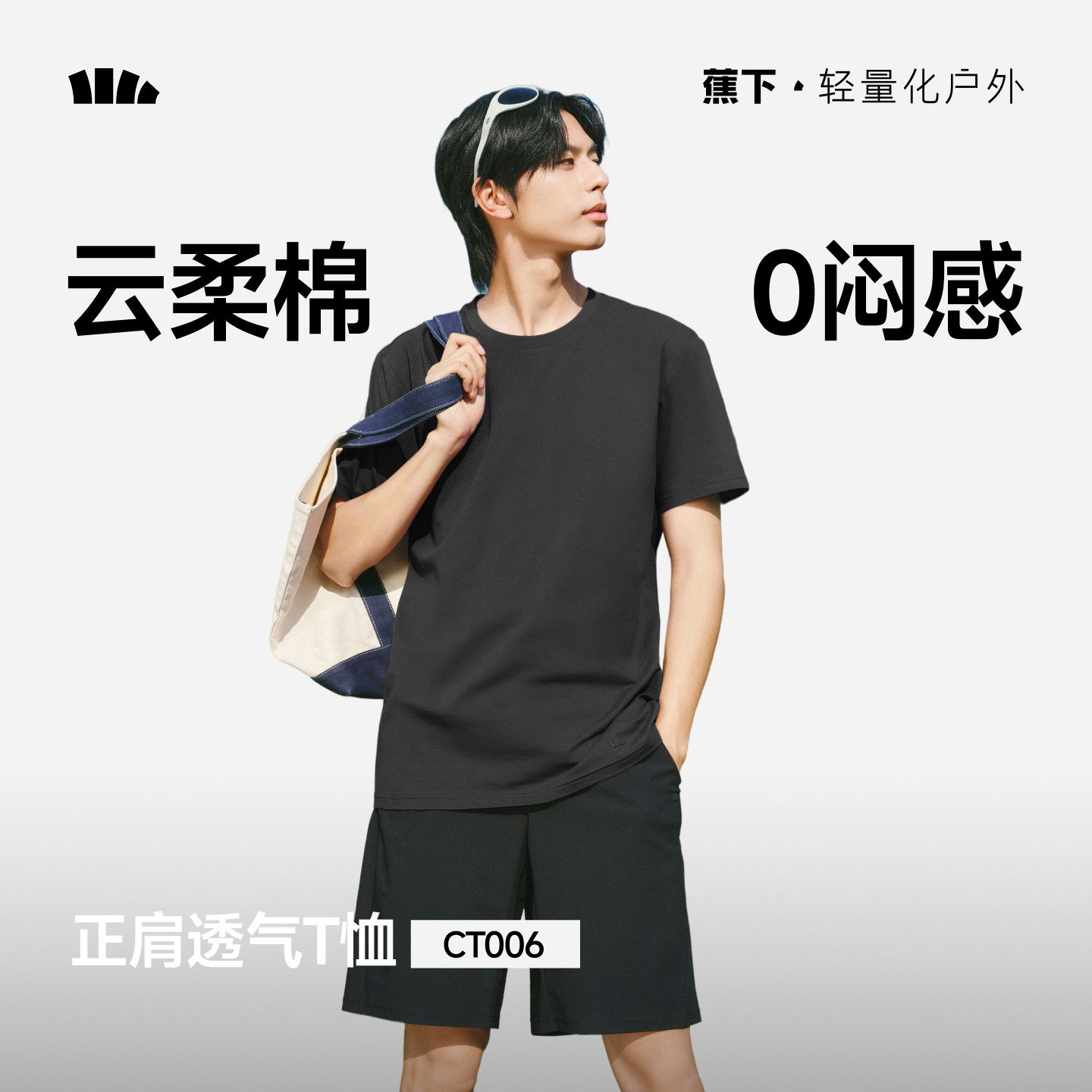 蕉下男士T恤棉柔亲肤透气高弹耐磨夏内搭打底衫圆领正肩短袖上衣