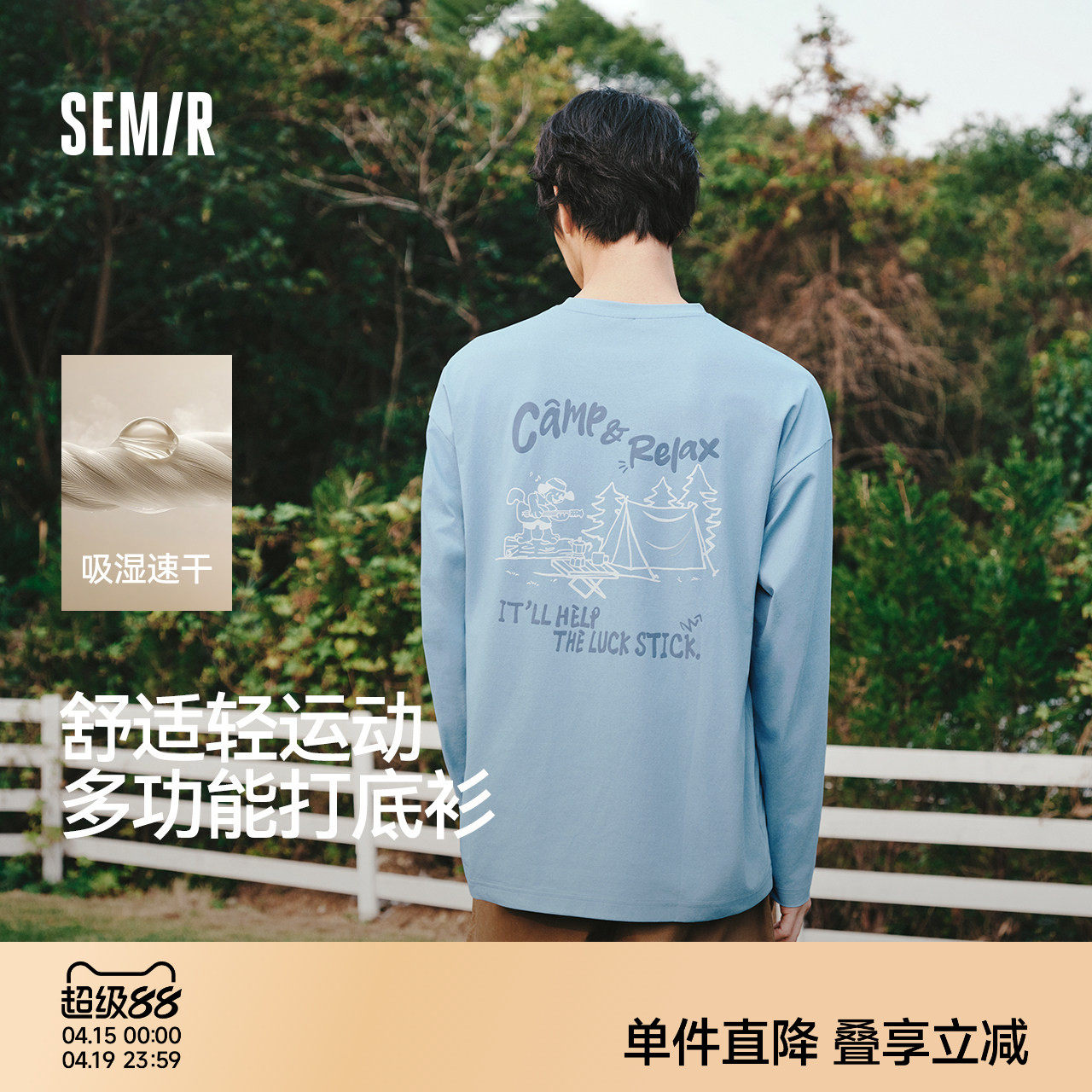 森马长袖T恤男春季速干图案圆领打底衫2026新小宽松字母印花上衣